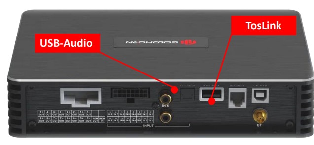 Одним из значимых обновлений GoldHorn DSPA 810 SE V2 стало внедрение дополнительных цифровых входов USB‑DAC Type A и оптического TosLink с поддержкой частоты дискретизации входного сигнала до 192 кГц. Теперь пользователи могут напрямую подключать к усилителю устройства для воспроизведения аудио высокого разрешения посредством оптического или USB‑кабеля. При использовании смартфона в качестве источника звука может потребоваться дополнительный OTG‑адаптер для организации соединения.